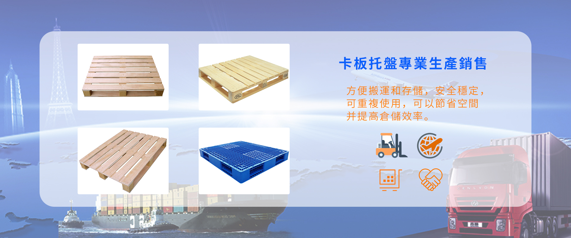 熱門關鍵字:木托盤、免燻蒸托盤、塑料托盤、EPAL歐標托盤、木箱、膠合板木箱、塑料週轉箱、EVA托盤、EPE包裝、EPP托盤、中空箱、紙護角